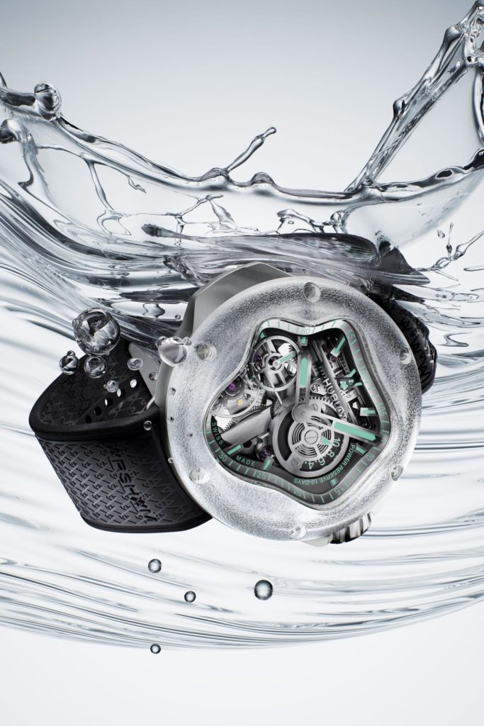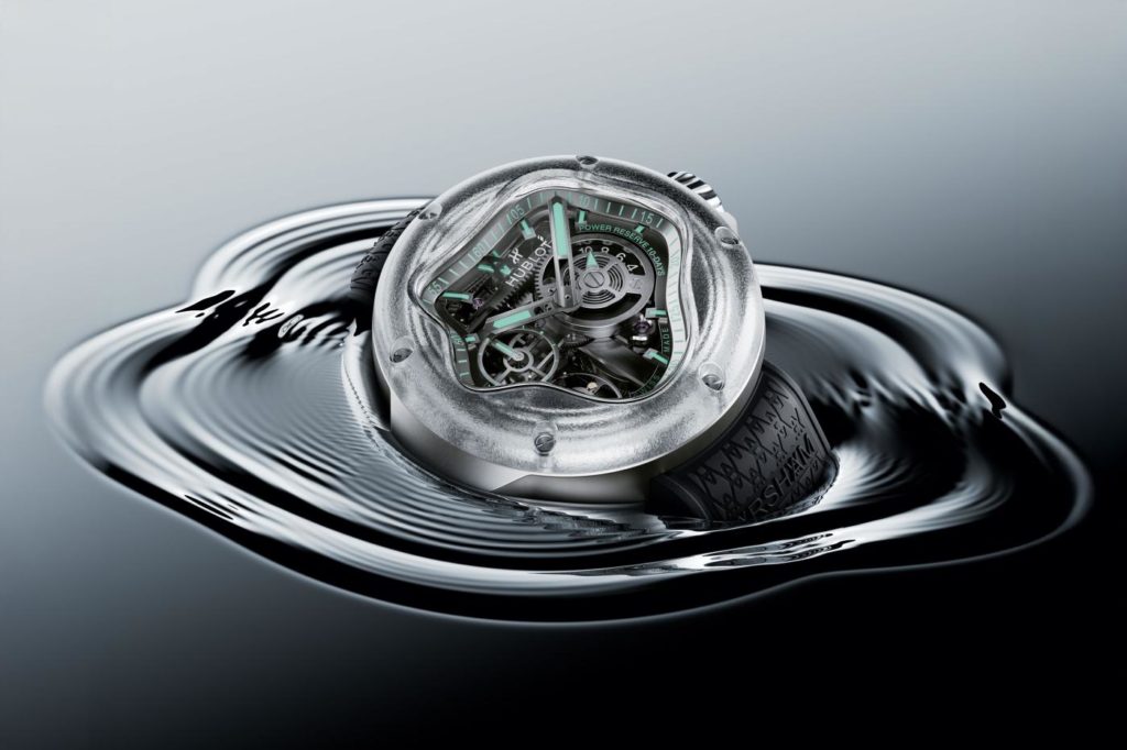 «Новий результат співпраці з Hublot присвячений темі перебігу часу і транслює її через форму корпусу, натхненну ідеальною геометрією краплі води, всередині якого встановлено механізм Meca-10 від Hublot. Прозорість конструкції годинника передає прозорість і рух води, зваженої, точної і завжди мінливої», — коментує художник Деніел Аршам.