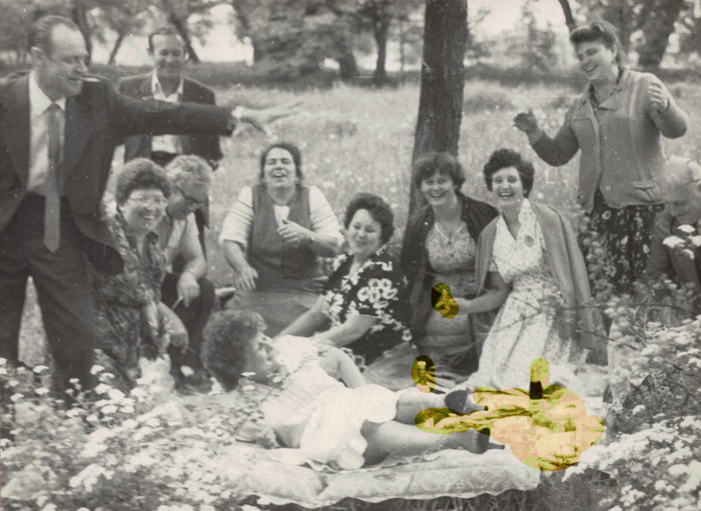 На початку року в рамках навчання на MYPH я створила серію фотографій «Альбом родини, що постійно їсть». Я вже згадувала про те, що мій дідусь багато фотографував, і основою цієї серії є саме його фотографії. Це не перший проект, в якому я звертаюсь до сімейних архівів, але робота досить масштабна вийшла.