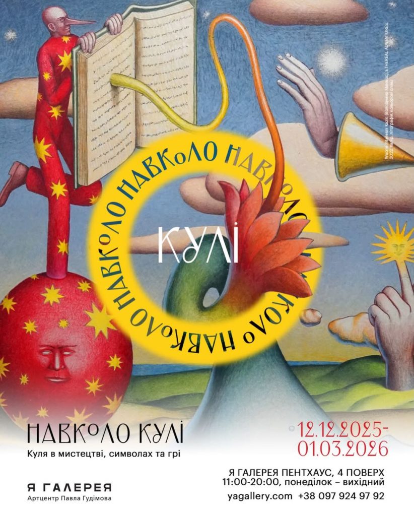 Саме з цієї простої форми починається велика історія нової виставки Я Галерея Пентхаус. Її ідею підказала архітектура самої будівлі на Зеленій, 20: купольна башта завершується об’ємом, що нагадує кулю — знак, символ, «мітку», з якої й розкрутилася тема виставки, занурившись у яку можна зустріти безліч куль і сфер у різних проявах, місцях та значеннях.